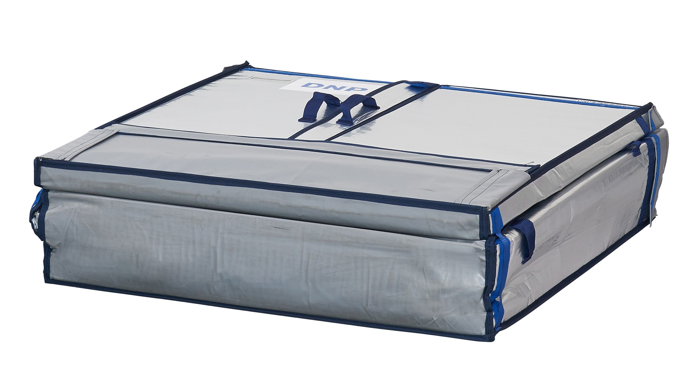 DNPは、インキ等を均一に塗布するコーティング技術や、金属に微細なパターンを形成する微細加工技術などを活用し、光や熱、液体や気体等を制御する高機能フィルムの数々を開発してきました。「DNP多機能断熱ボックス」は、ガス(気体)透過性の低いハイバリアフィルムを活用した真空断熱パネルをボックスのすべての壁面に利用することで、高い断熱性を有しています。輸送時には、電源がない環境でも内部の温度を長時間一定範囲に保つことが可能です。