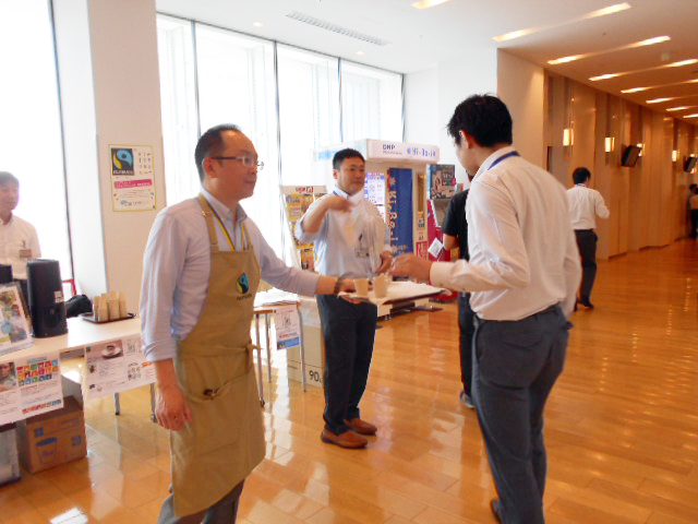 DNPでは、5月第2土曜日の「世界フェアトレードデー」に合わせ、毎年5月を「フェアトレード月間キャンペーン」として、社員がフェアトレード認証製品を体験できる機会を増やしています。このキャンペーンは継続的に行っており、今年で10回目となりました。