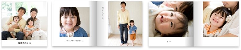 選んだ写真が自動的にフォトブックの各ページに配置されるため、1ページずつ利用者が設定する必要がありません。レイアウトや写真の並びの変更、テキスト入力も可能で、気に入ればそのまま注文できます。