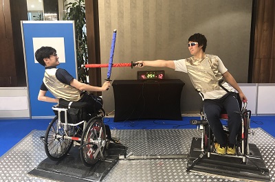 パラスポーツである「車いすフェンシング」の疑似体験も可能
