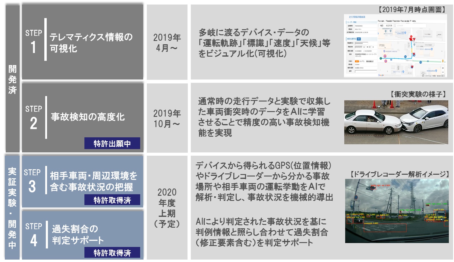 なお、各ステップで開発する機能について、STEP2は特許出願中、STEP3・4は特許取得済みです。