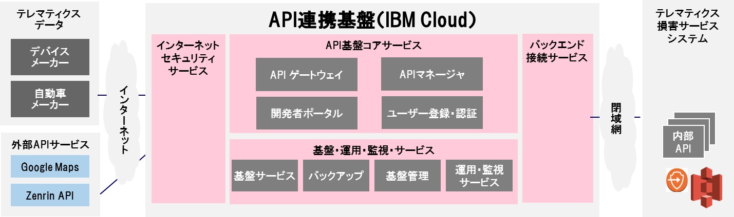 複数のサービスや車両から得られるデジタルデータを取り扱う企業との間で、インターネットを介して、サービスやデータを連携するAPI連携基盤をIBMが開発いたしました。その中核となるサービスとしてSBIFIが提供するSaaSを採用し、検討を含めて5ヶ月という短期間で導入を実現しています。本サービスは、金融情報システムセンター(FISC:The Center for Financial Industry Information Systems)の安全対策基準に準拠したセキュリティ、アクセス認証・トランザクション量制御、開発支援・運用管理機能を標準装備した共同利用型SaaS形態であり、投資を抑えつつ、初期構築の早期化を実現するとともに、直感的な操作を可能とするグラフィカルユーザーインターフェース(GUI)によりユーザーの運用管理の負担を大幅に軽減いたします。