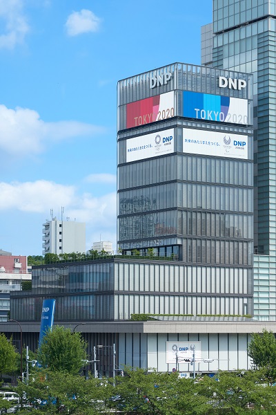 大日本印刷株式会社(DNP)は、東京2020オリンピック・パラリンピック競技大会(東京2020大会)のオフィシャルパートナーとして、この大会を応援する意味を込めて、今回、DNP市谷田町ビル(東京都新宿区)に、東京2020大会を印象づけるデザイン装飾である「大会ルック」*1とエンブレムの広告を掲出しました。