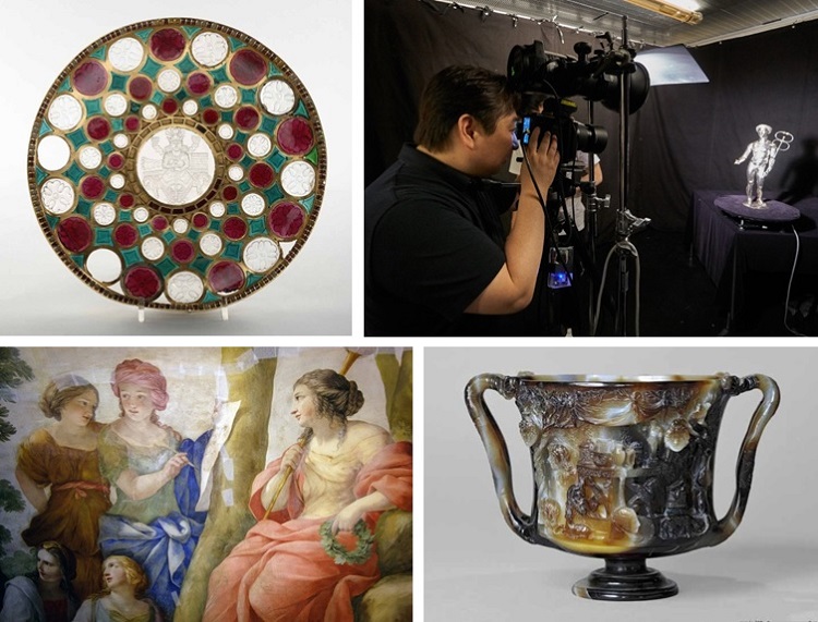 BnFの貨幣・メダル・古代美術部(Le département des Monnaies, médailles et antiques)は、世界に類を見ない貴重なコレクションを所蔵しています。今回のプロジェクトでは、サン・ドニ修道院の宝物(プトレマイオスの杯およびホスロー1世が所持していたといわれるササン朝の杯、金・水晶製)、アミコスの絵師の水瓶(ヒュドリア)といった古代の美術品から、中世とルネサンスの芸術作品までを含む傑作の数々を選び、デジタル化していきます。