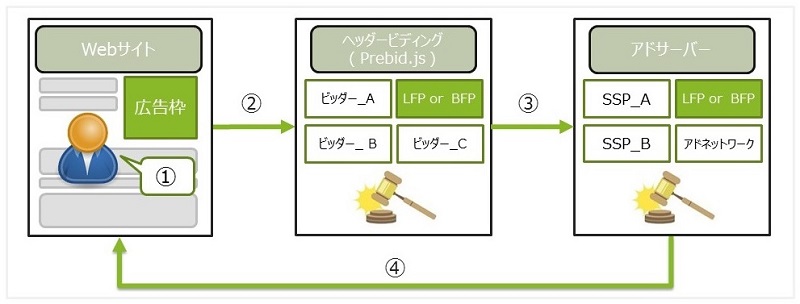 LFPとBFPの「ヘッダービディング」対応のイメージ