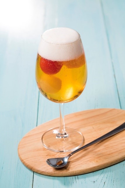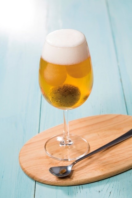 溶けにくい「アイスボーール」(商標申請中)入りで、ゆっくり飲んでも冷たさが維持。徐々に味が変化するフルーティな新感覚ビアカクテル