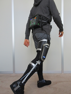 Orthobotは、歩行に何らかの障害を抱える人々の歩行リハビリテーションを補助する装着型アシストロボットです。この機器はモーターとセンサーを内蔵した本体ユニットを、使用者が歩行リハビリテーションにおいてKAFO(長下肢装具)に取り付けることにより、装着者の歩行を本来有るべき歩行の運動に誘導することができます。
