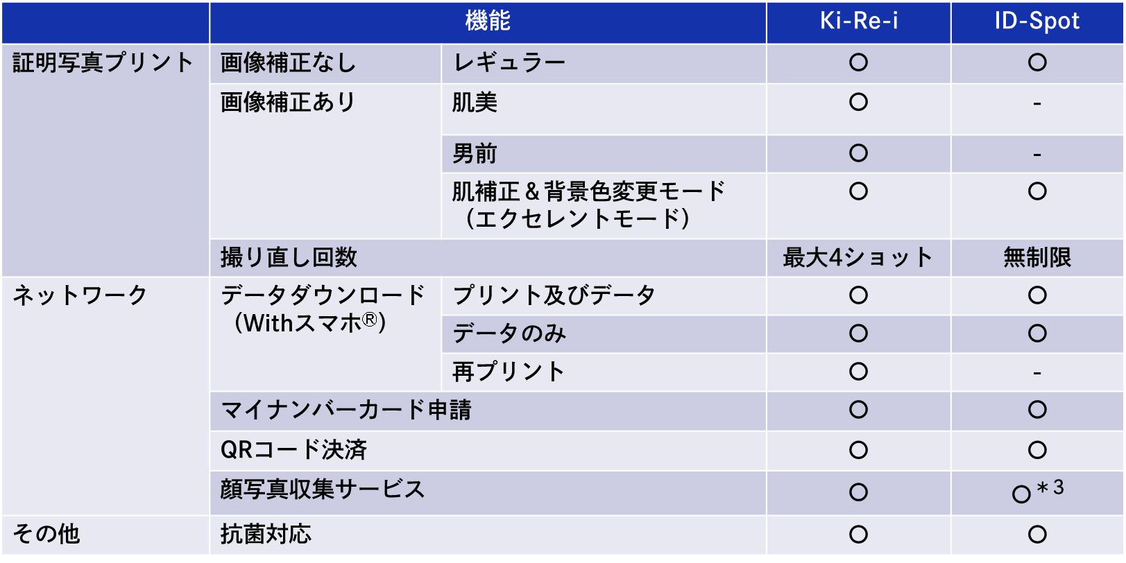 【「ID-Spot」と従来の「Ki-Re-i」の機能比較】
