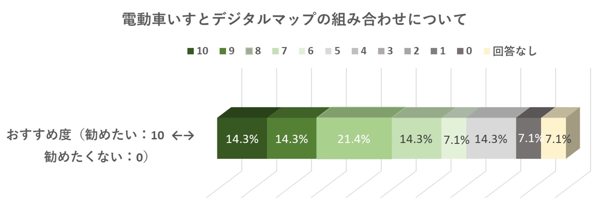 「DNP MAPベース地域振興情報発信プラットフォーム」で発信した情報及び電動車いすを使用して、松島海岸の観光を体験いただいた方にアンケート実施しました。その結果から、観光地を電動車いすで周遊する際に、バリアフリー情報と観光スポット情報がデジタルマップに掲載されていることの有用性や、今後の改善点などを知見として獲得できました。