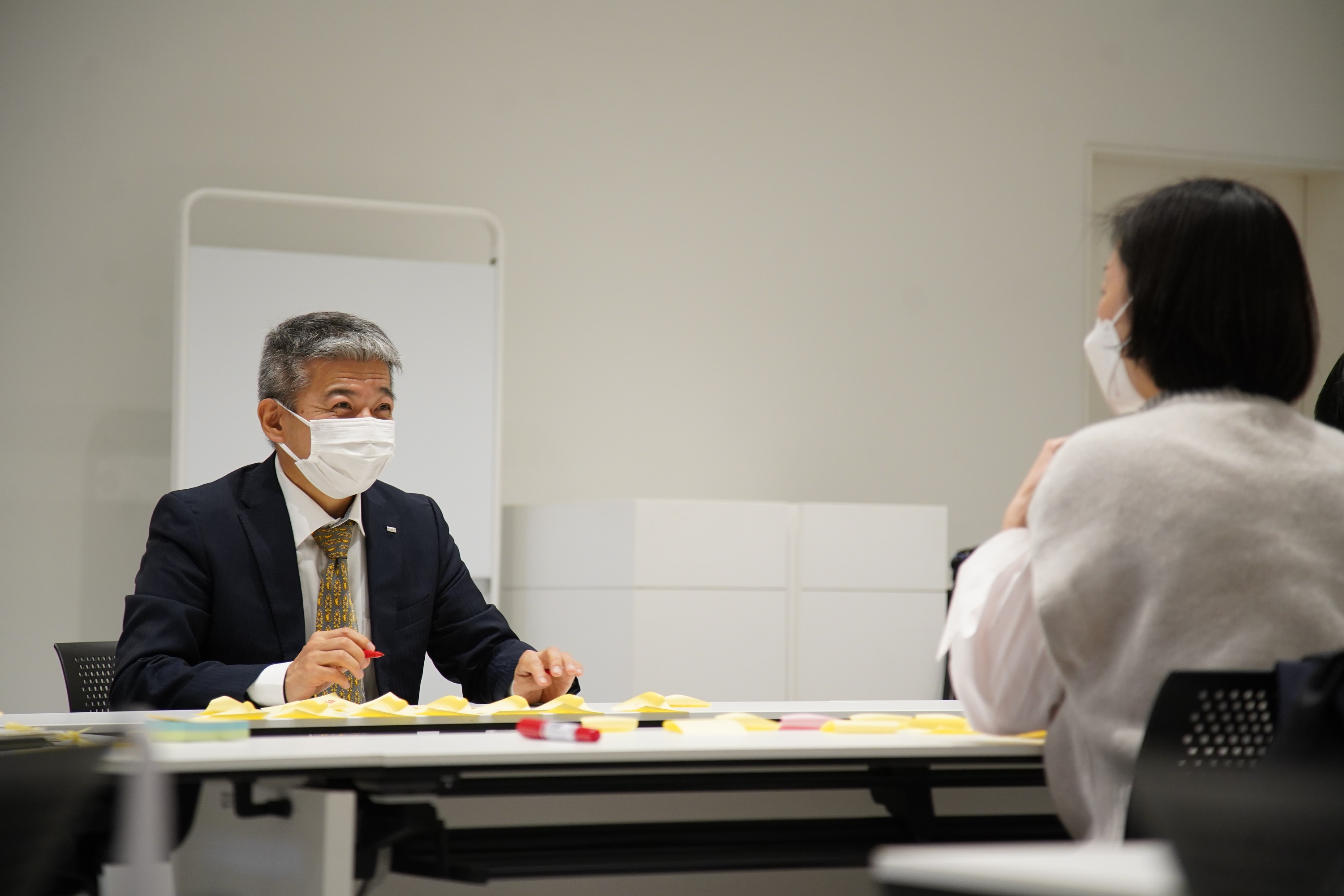DNPは、“人と本との出会いは、人生を変えるきっかけにもなる大切なもの”だと考え、「出会うべき本と、出会える世界」の実現を目指して、出版流通改革に取り組んでいます。今回実施したセミナーでは、読書需要の推移や現在の動向について説明したほか、「出会うべき本と、出会える世界」のコンセプト動画とともに、オンデマンド製造で少部数・短納期を実現して欠品を防ぐといった本の製造・流通・販売の改革の取り組みを紹介しました。またワークショップも実施し、本との出会い方について参加者同士がグループを組んで話し合いました。なお、このセミナー&ワークショップには、NPO法人 読書の時間の田口幹人氏にご協力いただきました。