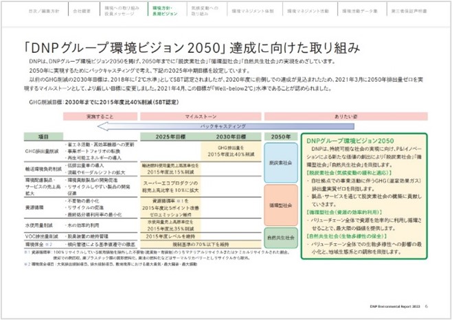 「DNPグループ環境報告書2022」(写真右) https://www.dnp.co.jp/sustainability/report/pdf/dnp_csr2022data.pdf