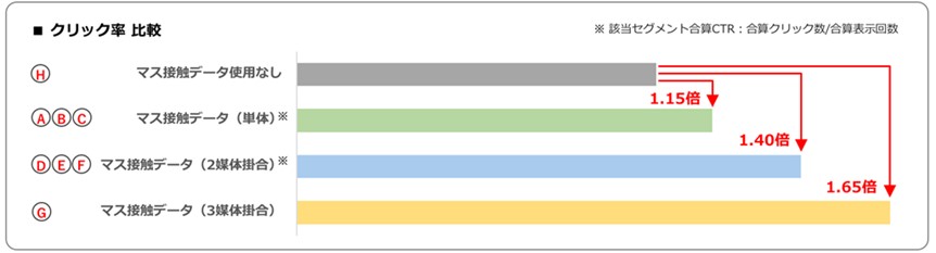 - マス接触データを使用しないセグメントHと比較し、A~G全てで広告のクリック率が向上しました。