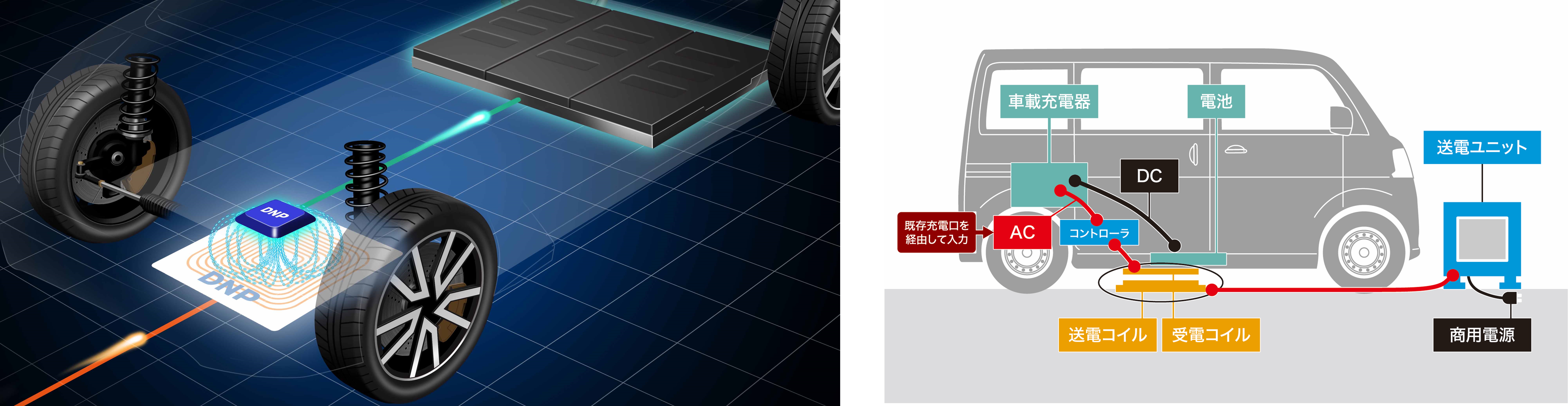 大日本印刷株式会社(以下「DNP」)、双日株式会社(以下「双日」)、株式会社ダイヘン(以下「ダイヘン」)、の3社は、ワイヤレス充電機能を搭載した商用電気自動車(EV)の実用化に向けて業務提携し、共同で取り組むことについて基本合意しました。この度、ワイヤレス充電機能を搭載した商用EVでは国内初となる登録の認可を軽自動車検査協会より取得し、公道での実証を開始しました。