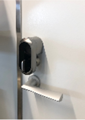 ・ 管理対象施設の既存のドアに、施設管理用デバイス「FREEKEY Lock」を後付けで設置します。ドアの取り換えなどの工事が不要で、施設側は容易に準備できます。