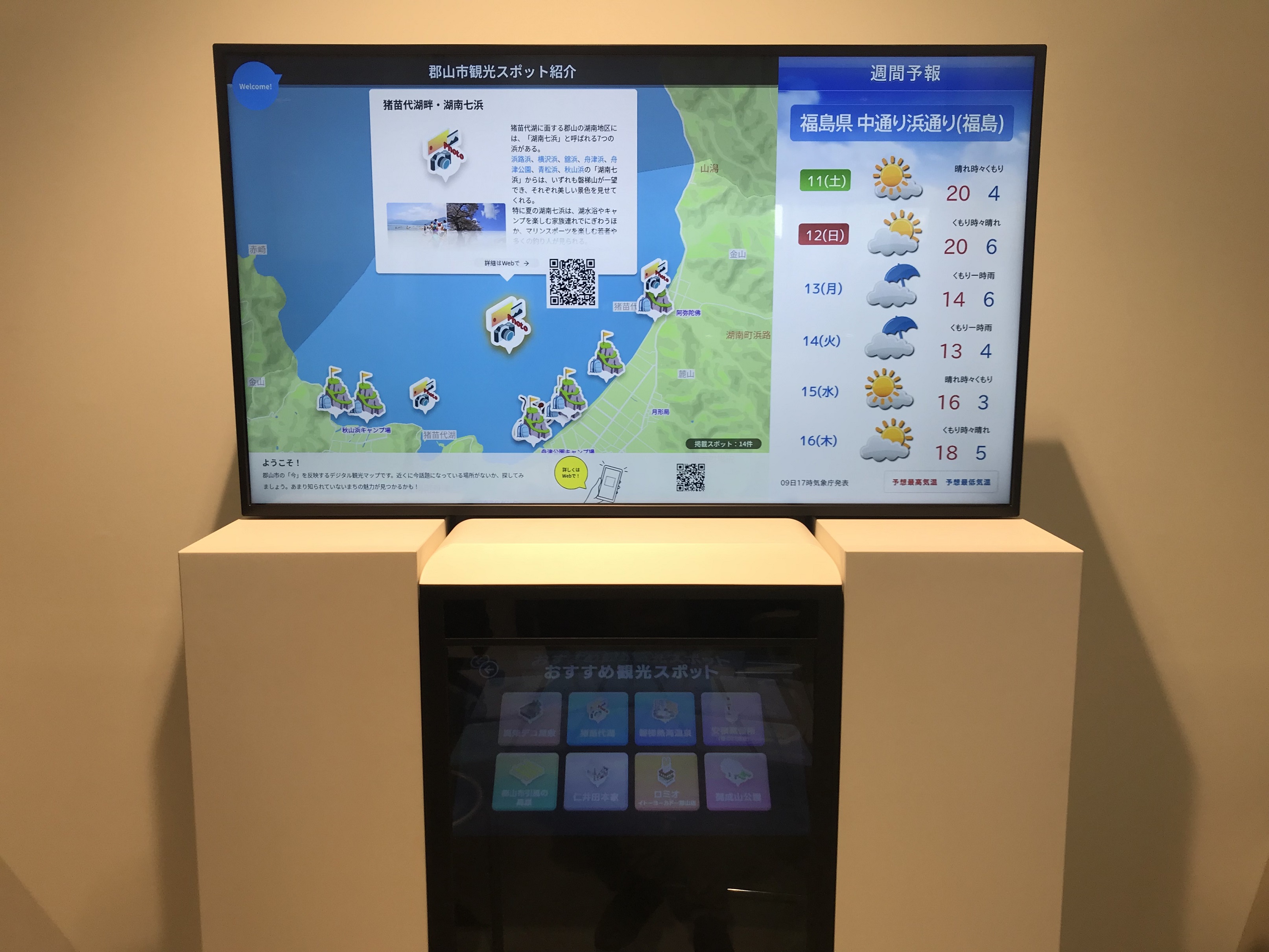 こおりやま観光案内所にSNSと連動して地域の情報を発信するデジタルサイネージを提供