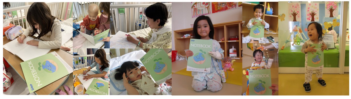 - ノートをプレゼントした子どもたちやその家族から、「院内の環境でも子どもたちが資源の再利用やSDGsについて考える機会ができて良かった」「紙カップがきれいなノートに変身していてびっくりした」「学校でSDGsについて習ったばかりだったので、その具体的な活動を知ることができた」といったコメントをいただきました。