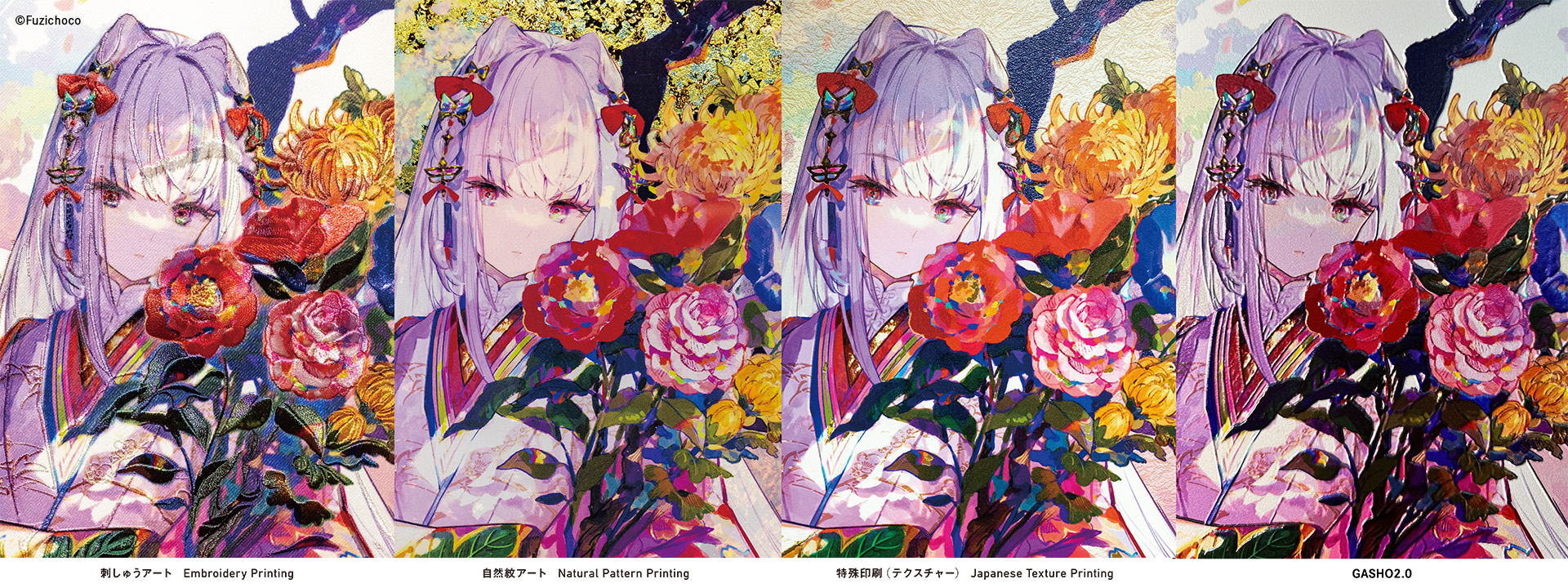 NFTをはじめとしたデジタル作品への注目が世界的に高まる中、デジタルでしか存在しない作品を現実に出力するニーズも高まっています。DNPは長年培った印刷技術を強みとし、作品の色味を忠実に再現するカラーマネジメント技術や作品の世界観を豊かにする多様な表現技術を有し、GASHO2.0はレリーフ・ペインティング技術を応用して、アルミ板に何層も重ねて塗装することで立体的な表現を可能にする出力技術を有しています。 こうした両社の強みを掛け合わせて、WebXでは、大人気イラストレーター・藤ちょこ先生の繊細で色彩豊かな作品をモチーフにして、日本の表現力と技術力を世界へアピールしていきます。