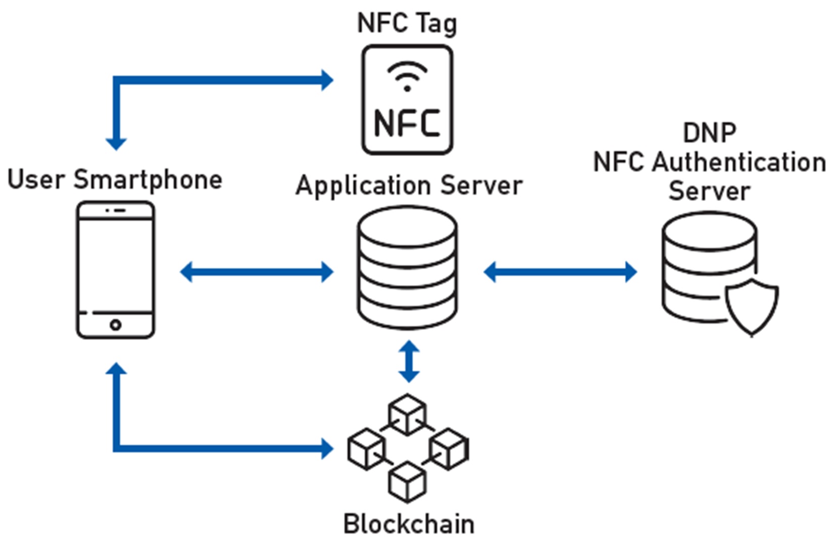 近年、ブランド品や高付加価値商品を中心に、巧妙化した偽造品の流通が増えています。DNPはこうした状況に対し、誰もが安全・安心に暮らせる社会の実現に向けてセキュリティー技術や認証技術の開発に取り組んでいます。近年は2022年3月から提供している「DNP NFCタグ認証プラットフォーム」*1を活用し、ブロックチェーン技術と連携することで、商品が正規品である証明を行うとともに、デジタル証明書のNFTを所有者に提供できるシステム(特許出願済み)の開発を進めています。このシステムを応用することで、誰でもスマートフォンを使用して即座に真贋判定を行うことを目指します。