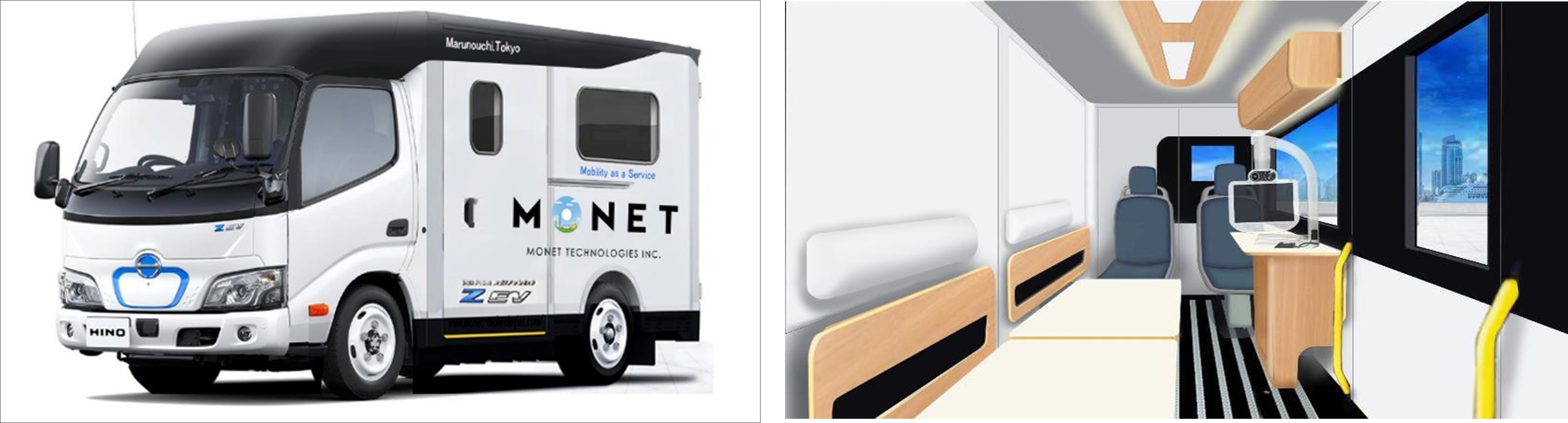 小型BEV(Battery Electric Vehicle)トラック「日野デュトロ Z(ズィー) EV」のウォークスルーバン仕様を、医療MaaS向けに架装して利用します。詳細はこちらをご覧ください。