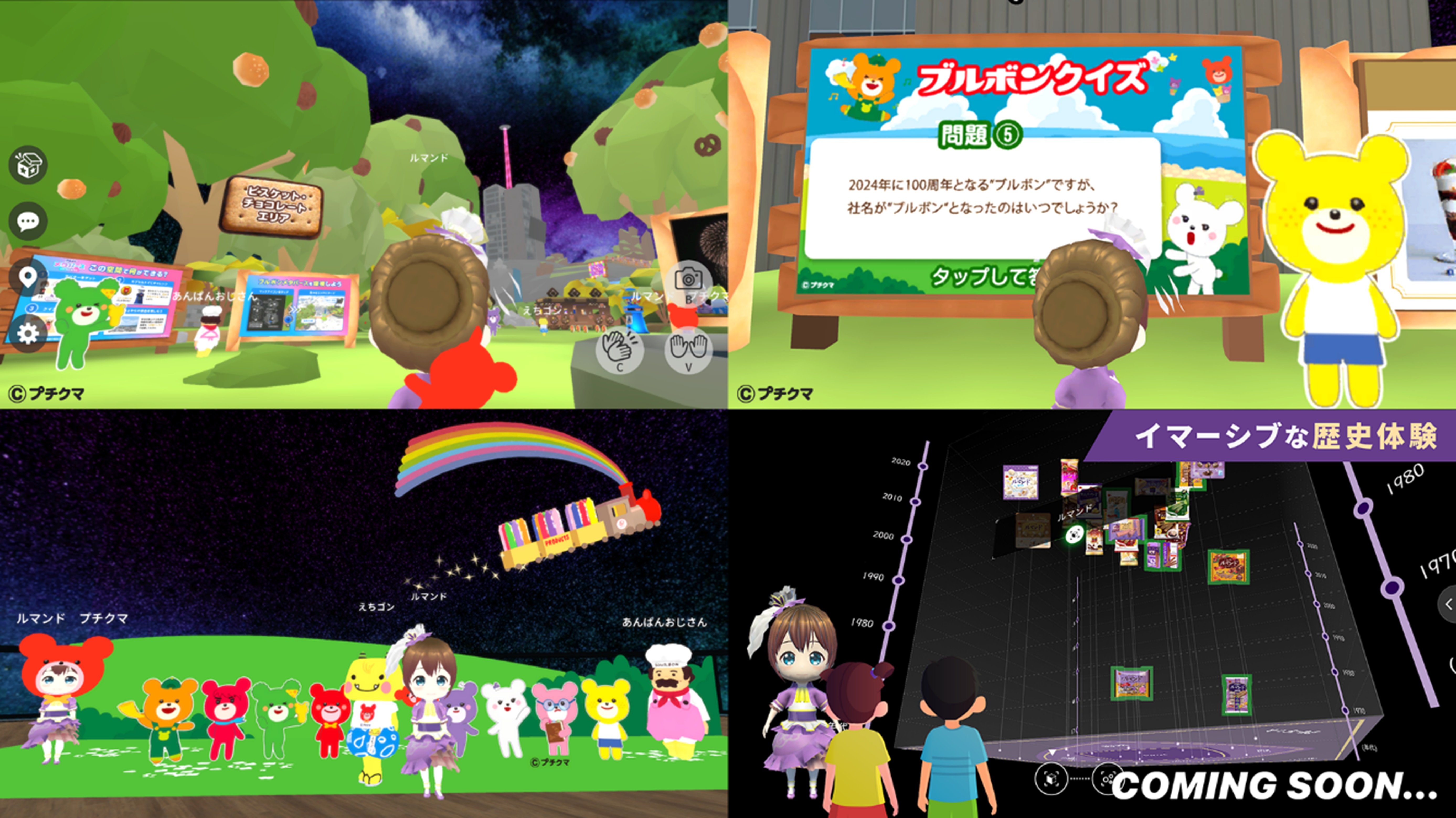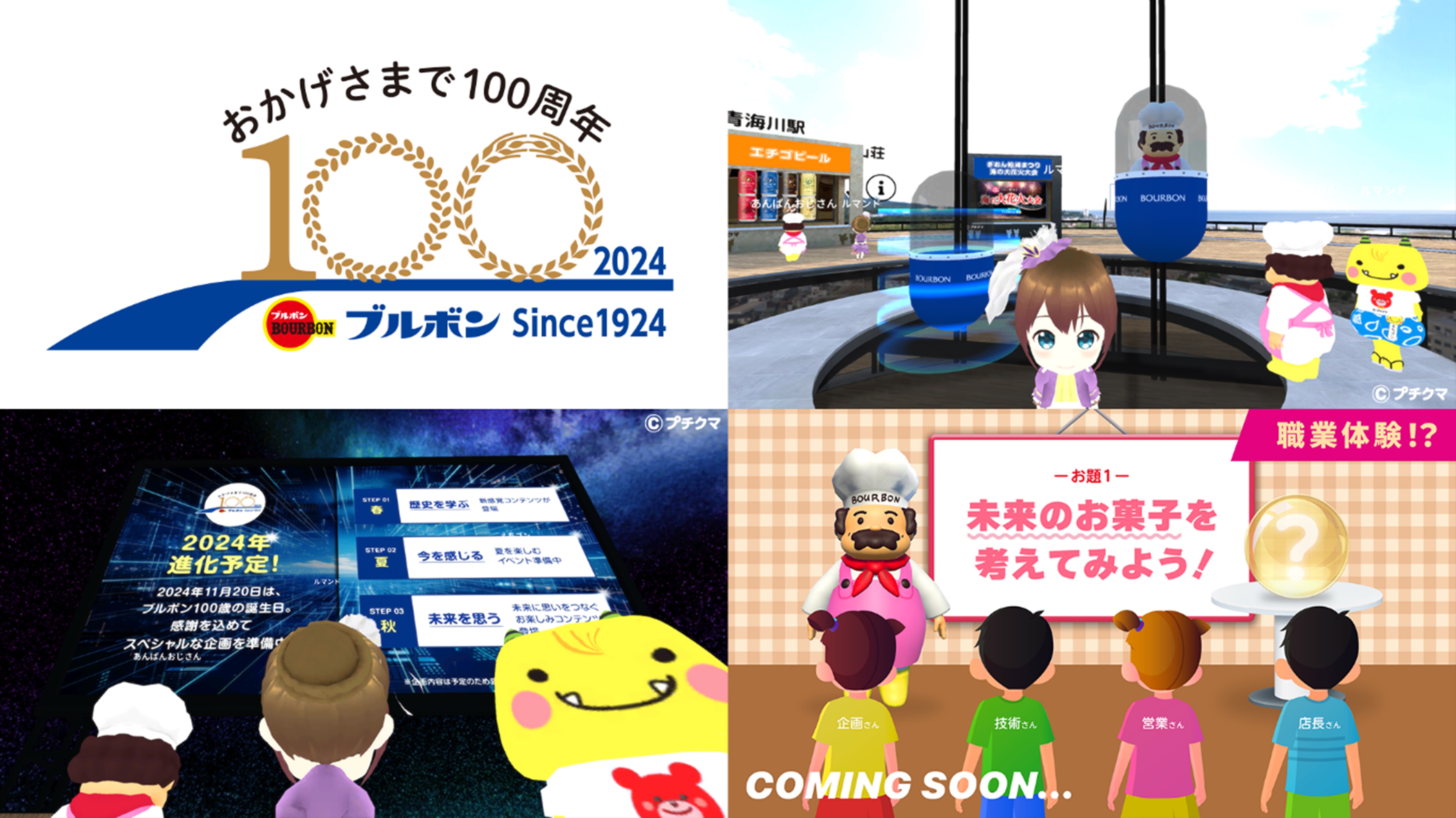- 100周年の感謝の気持ちを表すとともに、心と体の健康づくりを応援する多様な企画を通して、「ブルボンメタバース」の利用者が、同社のお菓子への興味・関心をより深めることを目指します。