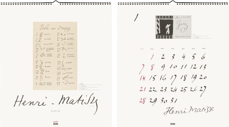 20世紀の美術を代表する巨匠・マティスの手書き文字によるカレンダーです。没後70年を数え、2023年・2024年に展覧会が続く画家の生涯と筆跡を楽しめるほか、インテリアとしての装飾性と機能性を兼ね備えています。