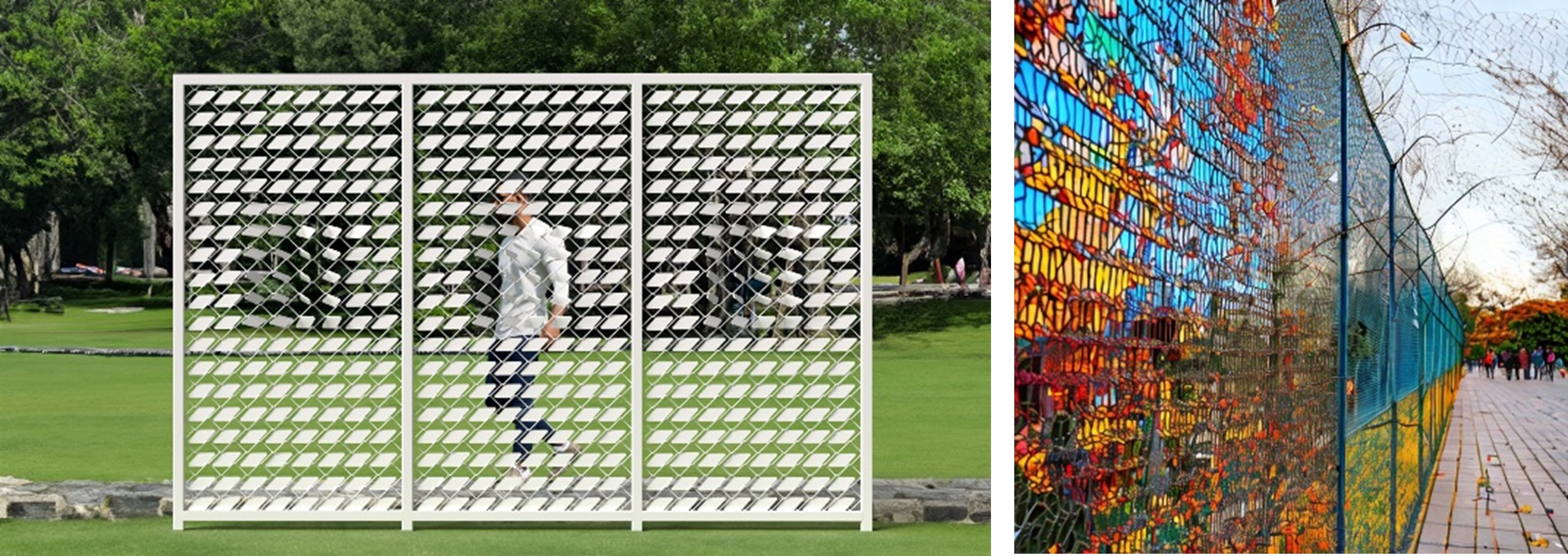 - 空間を隔てると同時に向こう側の風景を見渡せるネットフェンスに、つながりやコミュニケーションを誘発する仕組みやデザイン要素を加えることによって、「仕切ることでつながる」未来のインターフェースを実現します。