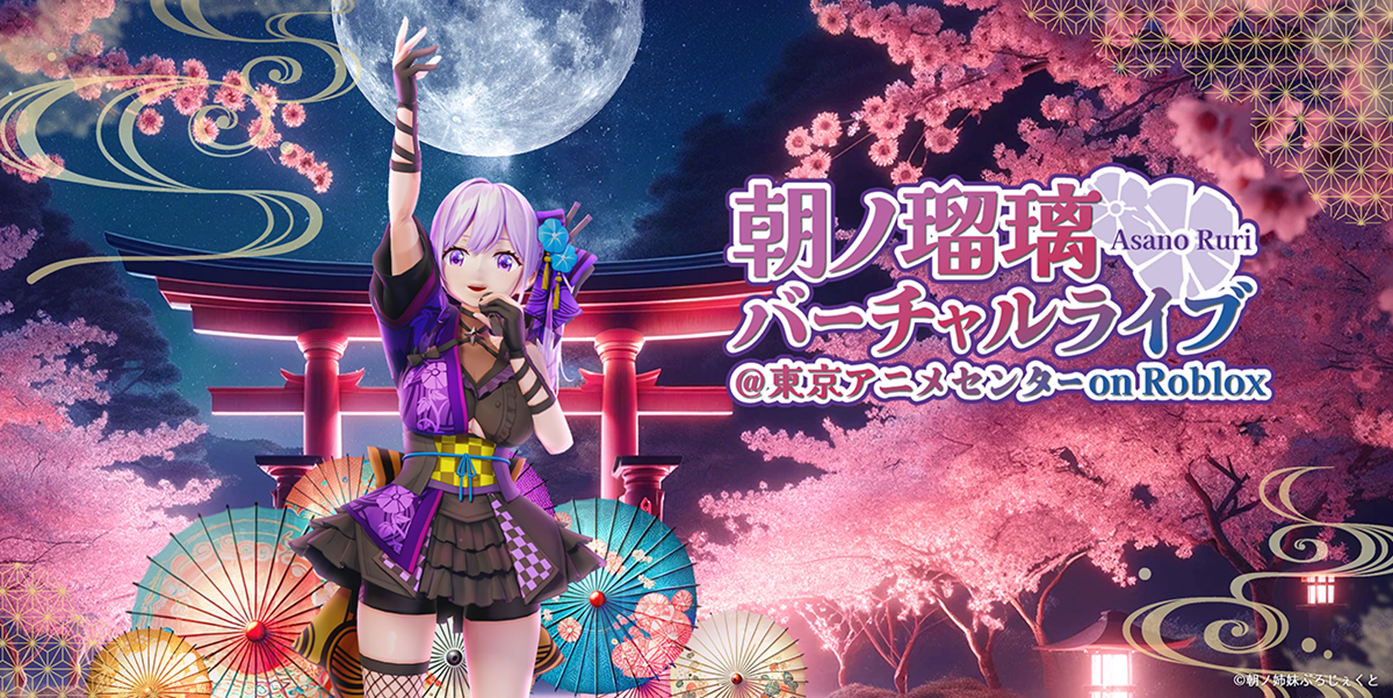 Roblox内で「朝ノ瑠璃」のライブパフォーマンスを視聴できます。世界中のユーザー同士がアバターを使って交流できるRobloxの特長を活かし、参加者がバーチャル空間でペンライトを振れるなど、能動的にライブを楽しめる仕掛けを用意しています。また、リアルのライブ記念グッズの購入や、事前に参加者から募集した応援コメントのライブ会場への掲出なども可能で、リアルとバーチャルを連動させたさまざまな体験企画を提供します。