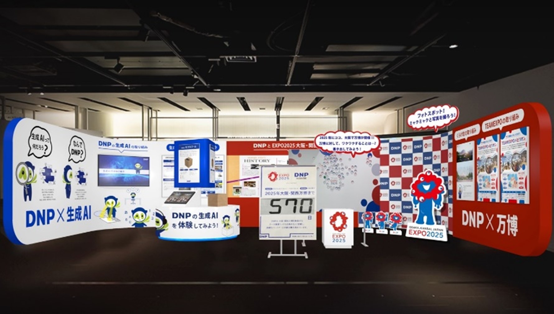DNPブースの「DNPと万博」のコーナーでは、DNPの大阪・関西万博での取り組み*3を紹介するとともに、来場者が参加できる「ミャクミャクとの記念撮影コーナー」や「万博へのメッセージボード」を展開します。展示を通じて大阪・関西万博についての生活者の興味・期待を高める体験コーナーです。