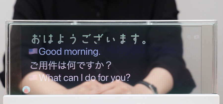 アイシンの「YYSystem」によって、日本語・英語・中国語・韓国語・ポルトガル語など23の言語のリアルタイム翻訳に対応し、訪日外国人等との対話を支援します。現在、DNP感情表現フォントシステムは日本語のみに対応していますが、今後は対応言語を拡張する予定です。