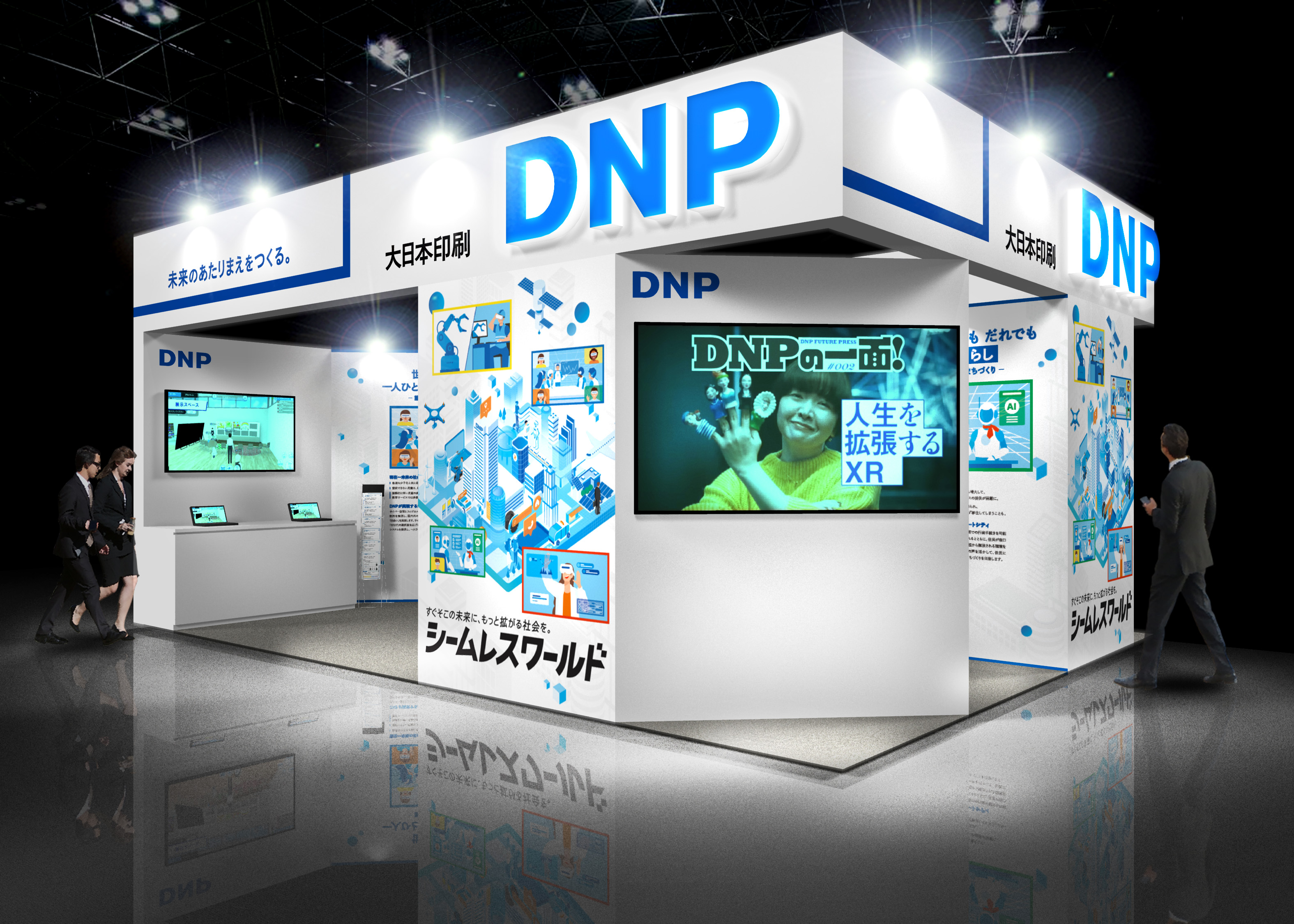 DNPは一人ひとりがいきいきと心豊かに暮らすための基盤づくりを推進し、快適でわくわくできる「人生100年時代のWell-being」の実現を目指しています。DNPブースでは、「未来のスマートシティ」の実現に向けて、くらし・まなび・働き方の三つのテーマで、デモ体験とともにさまざまな取り組みの事例を紹介します。