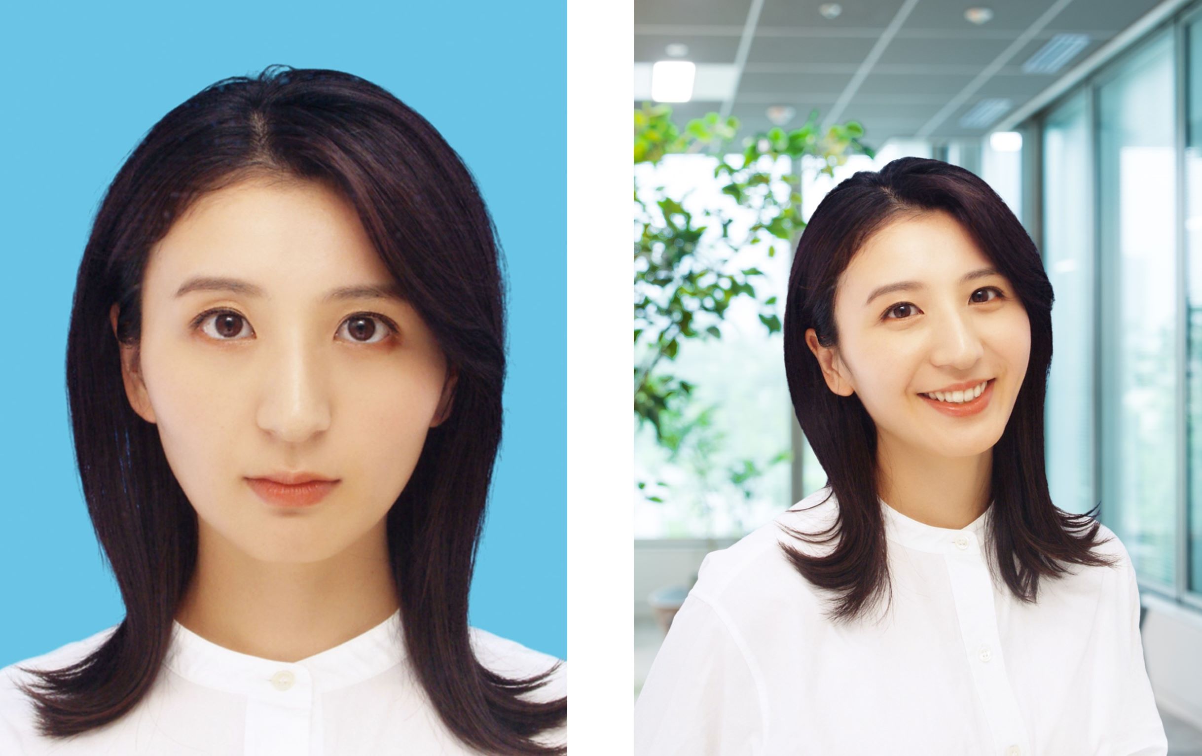 通常の証明写真のイメージ(左)と、プロフィール写真のイメージ(右)