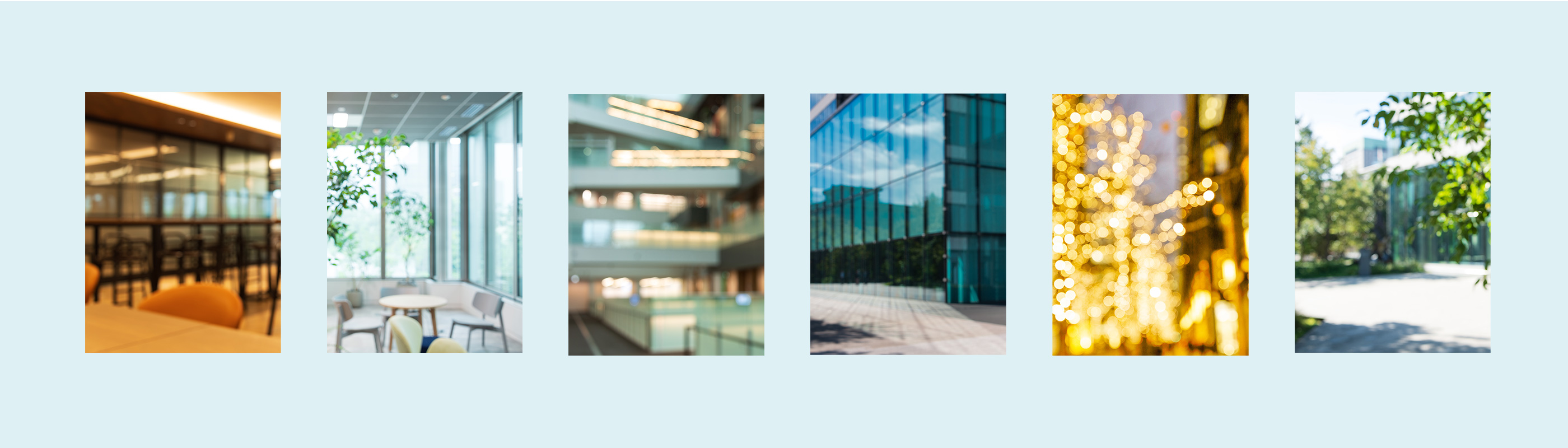 落ち着いた雰囲気のオフィス、爽やかな公園、シックなカフェなど、15種類*7のDNPオリジナル背景から好みの1点を選択できます。