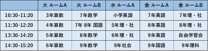 ○オンライン授業 : 5教科・週20コマのオンライン授業を行います。その教材として、株式会社城南進学研究社の「デキタス」(https://dekitus.johnan.jp/)を提供します。児童・生徒は、自身の学習の進度に合わせて授業を選択でき、違う学年の授業にも参加できます。児童・生徒が自分に合った学びを見つけ、学習意欲を向上させていくきっかけをつくり出します。