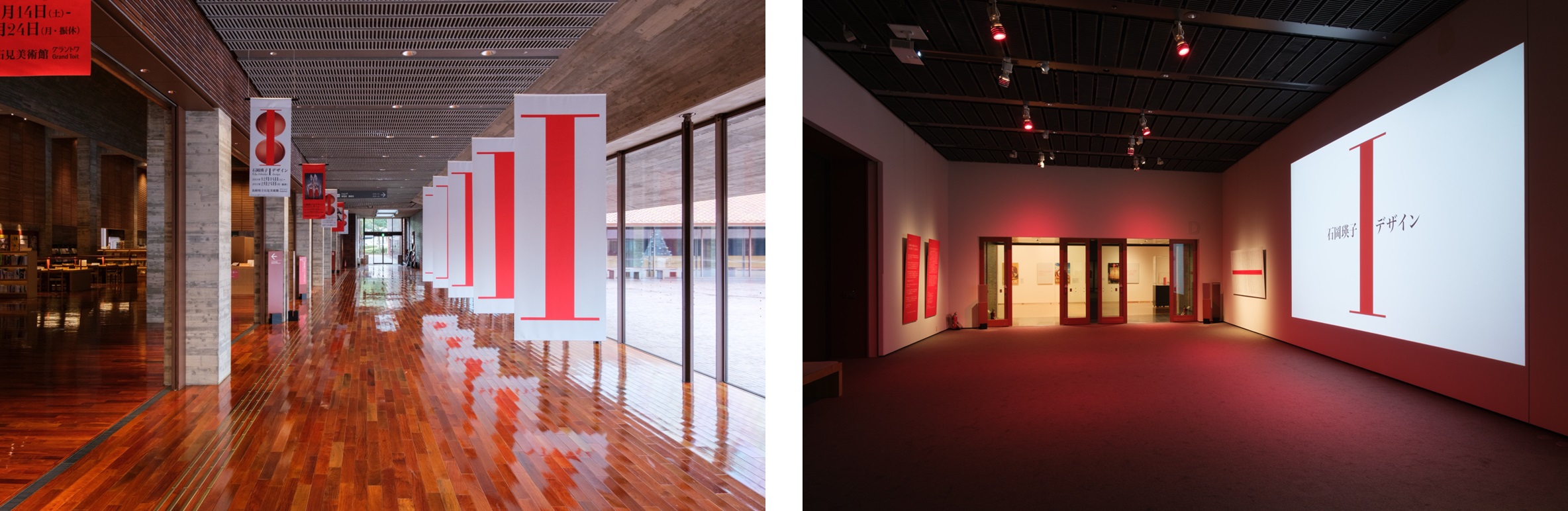 巡回展の第4会場は、島根県西部を代表する複合文化施設、芸術文化センター「グラントワ」内の島根県立石見美術館です。建築家・内藤廣氏が設計した「グラントワ」は、美術館と劇場が一体となった珍しい建物で、約28万枚もの地元・島根県産の石州瓦を使用しています。愛称である「グラントワ」はフランス語で「大きな屋根」を意味し、石州瓦の赤い屋根や、その下に人々が集まる様子を表現しています。 このように地域に慣れ親しまれた美術館の展示空間で、石岡氏の前半期の代表作を中心に、一大センセーションを巻き起こしたポスターやCM、アートワークやスケッチなど、石岡氏が飽くなき情熱を刻み込んだ約500点の作品を一挙公開します。