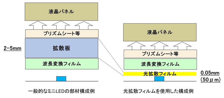 ミニLEDディスプレイ向けにLED素子の映り込みを抑える光拡散フィルムを開発