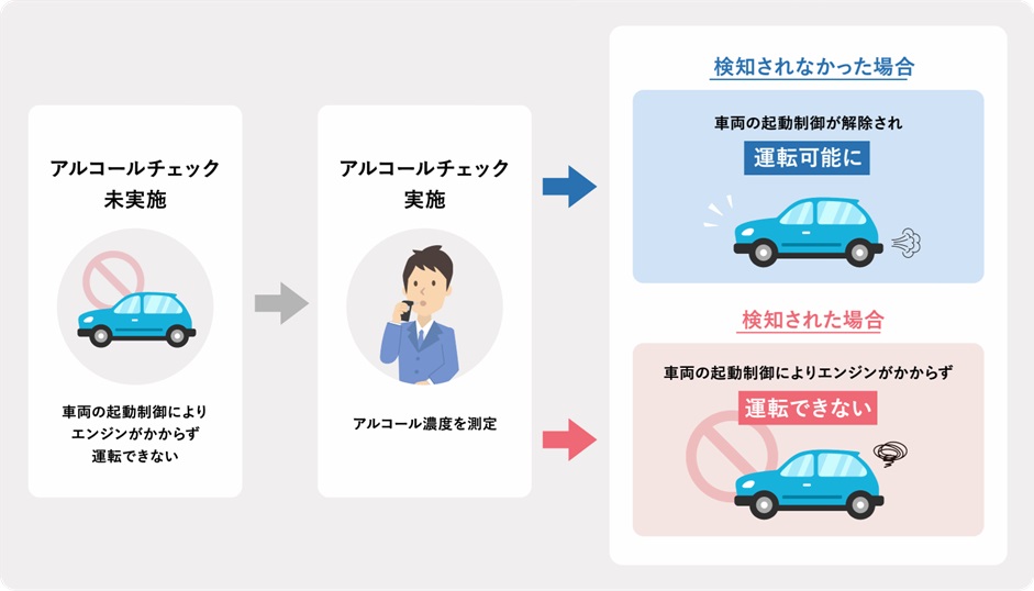 アルコールチェックと車両の起動システムを連携し、「飲んだらエンジンがかからない仕組み」を実現