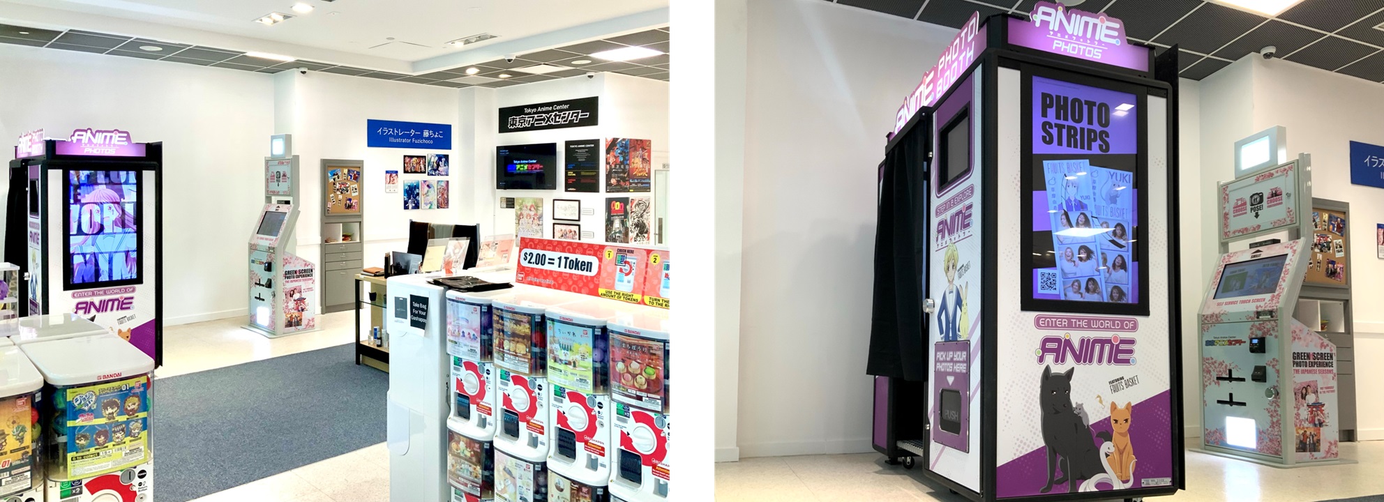 Tokyo Anime Center Burlington Mall内の様子(左)、アニメフォトブース(右)