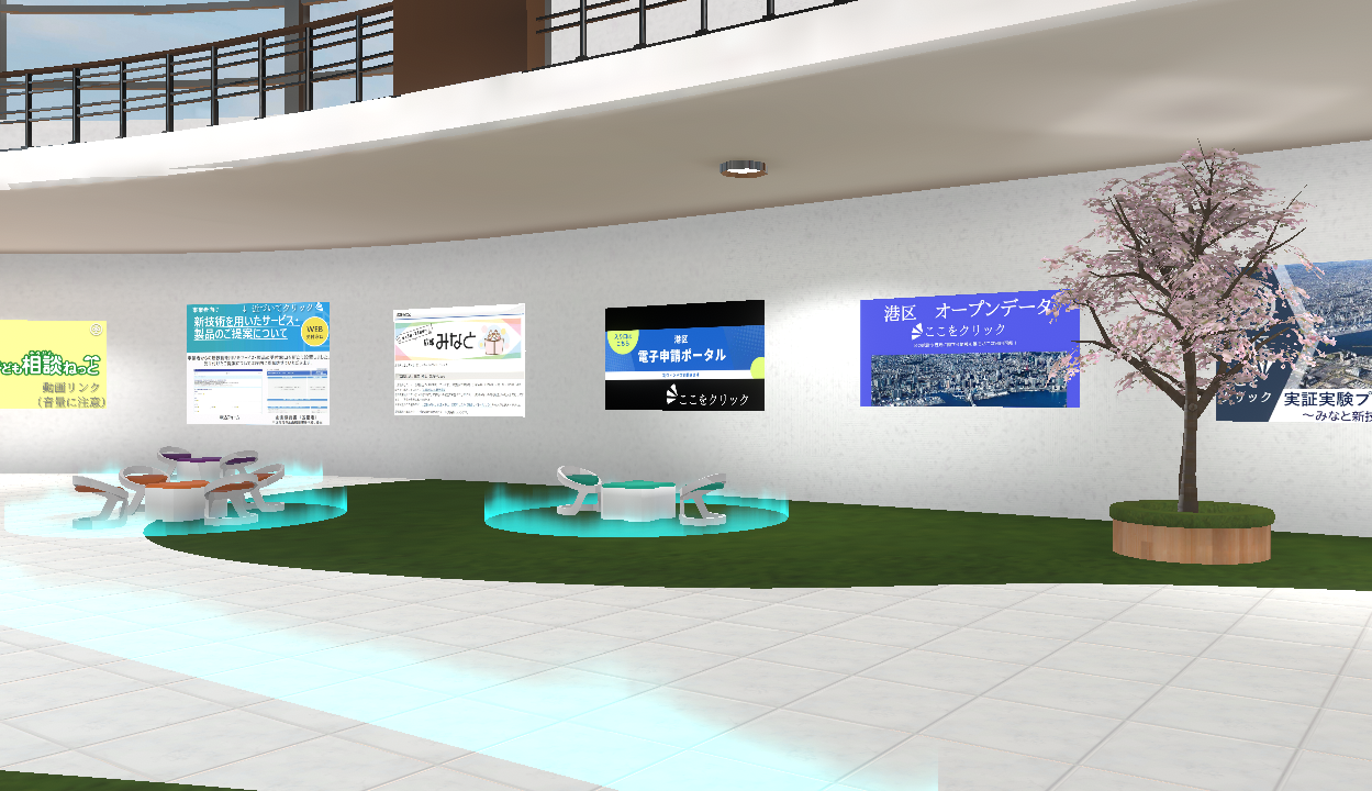 「港区メタバース総合支所」ではDNPの「メタバース役所」の行政の情報発信機能を利用し、区政に関する情報発信スペースを作成しました。本スペースでは、区の広報や取り組み等を発信する予定です。多様な情報発信を行うことで、より多くの方が情報にアクセスしやすくなることを期待しています。