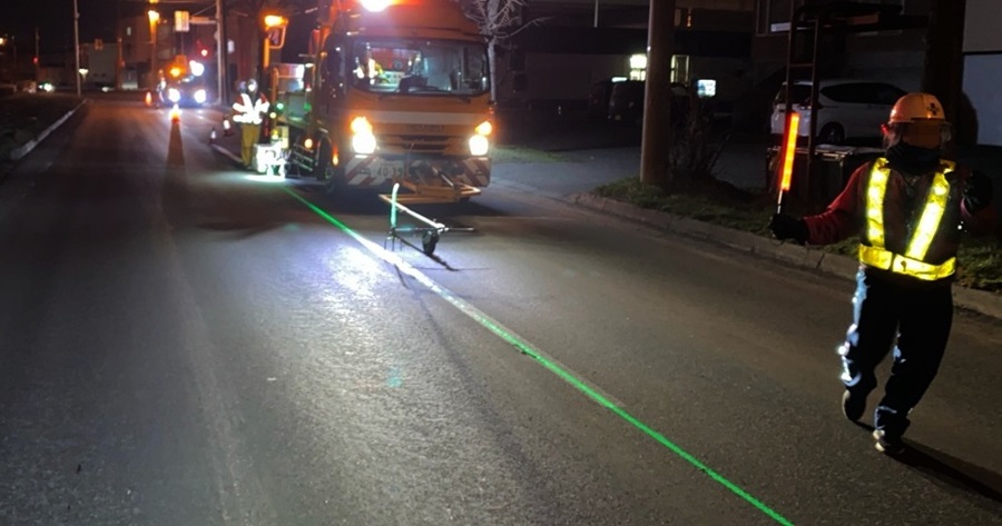 - 土木・建設分野 : 区画線整備車線の作図工程のラインマーカーとしての利用(墨出し作業の代替)、路上における車線誘導ガイドとしての利用など