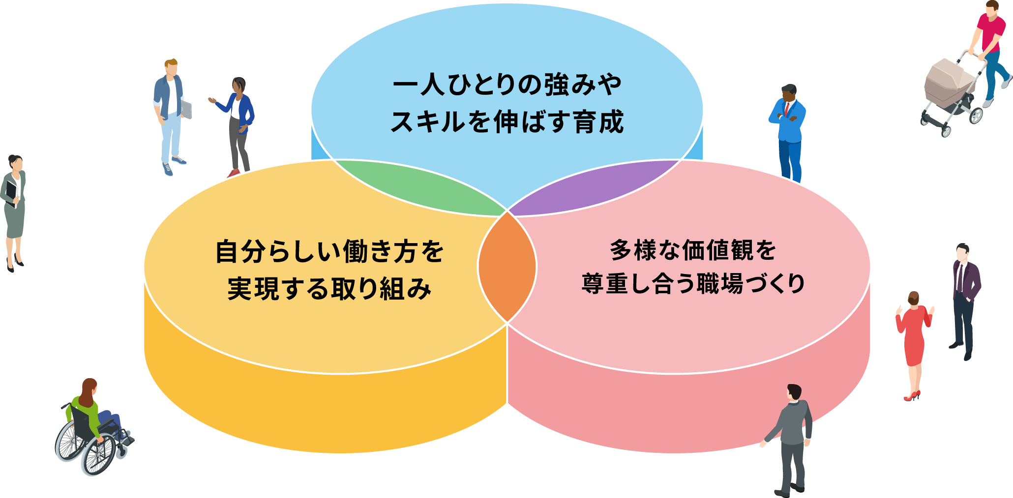 多様な知見や視点を持つ社員一人ひとりが、働きがいや成長を実感し、