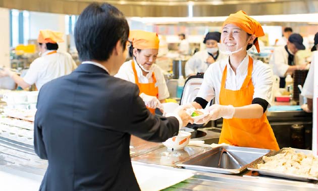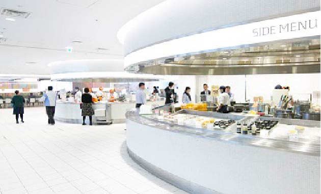 市谷地区には4つの社員食堂と5つカフェがあり、バラエティ豊かで健康に配慮したメニューやコーヒー・軽食などが提供されています。