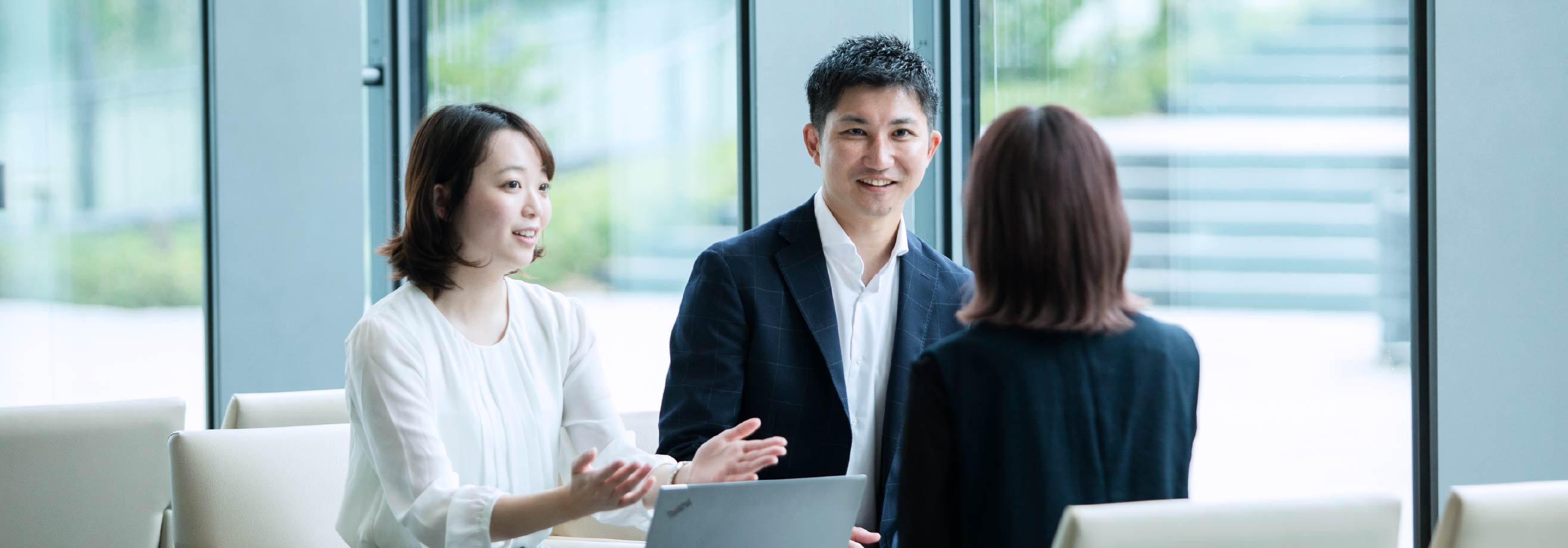 - 様々な製品・サービスを提案し、新しい価値を創出するプロデューサーです。製品・サービスをいかに掛け合わせてアプローチしていくか、自ら考えて実行します。提案の幅は自分次第で無限に拡がります。