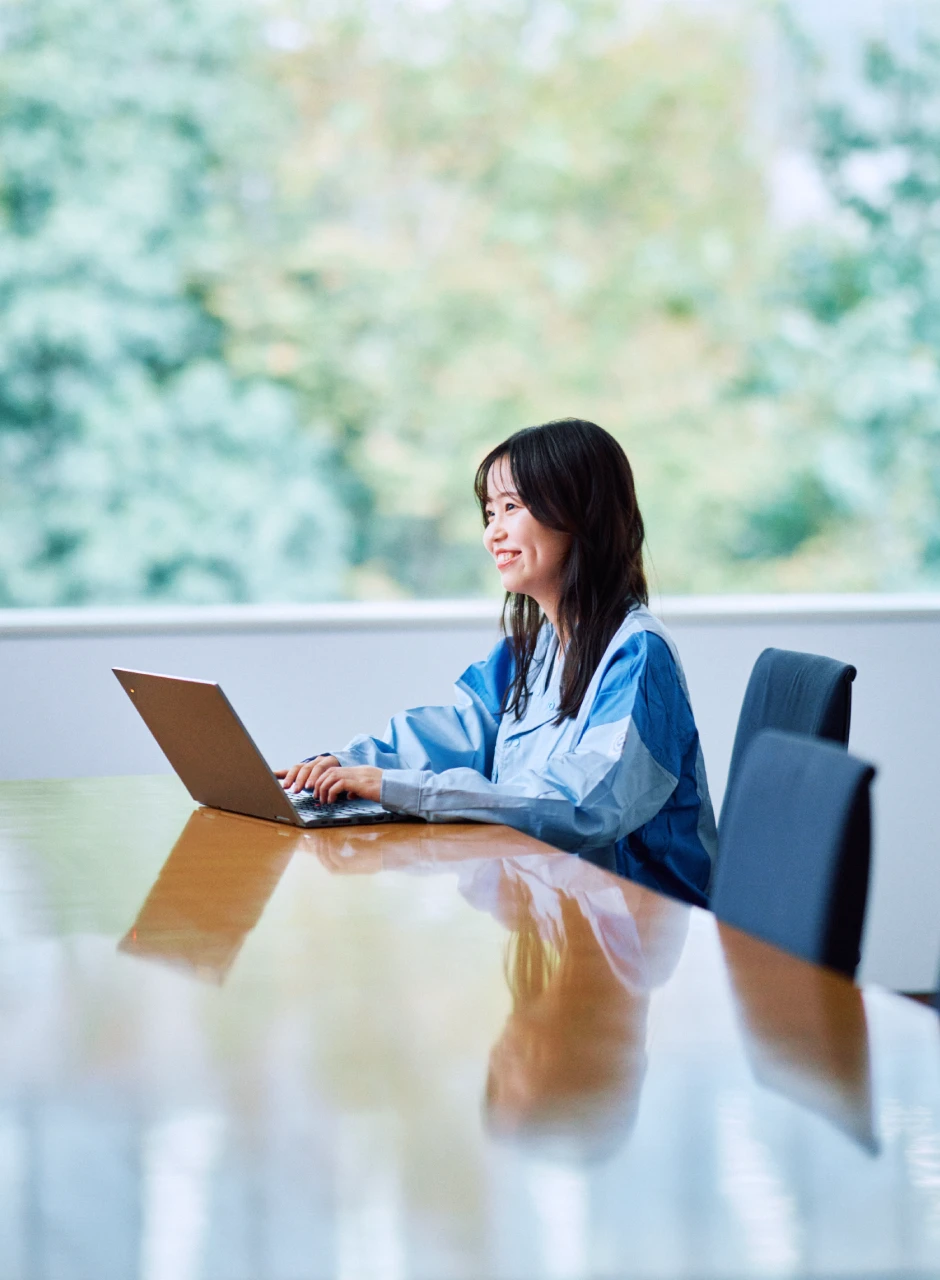 総務は工場の、事業部門の、会社全体の「広告塔」だと考えています。対外的にも影響する何らかの事案が発生すると、私たち総務が最初の窓口になるからです。どんなに忙しくても、私たちの工場が生み出している製品の「顔」なんだという自覚を持って、誰に対しても印象良く接するようにしています。私はまた、誰か一人でも嫌な思いをするような仕事は持続性がないと考えています。私が関わる全員に対して、「やってよかった!」と思えるような仕事がしたいです。