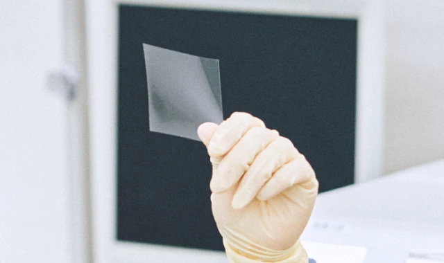 - ラボでサンプルを作製します。在庫からフィルムを切り出すなどの準備も周到に。