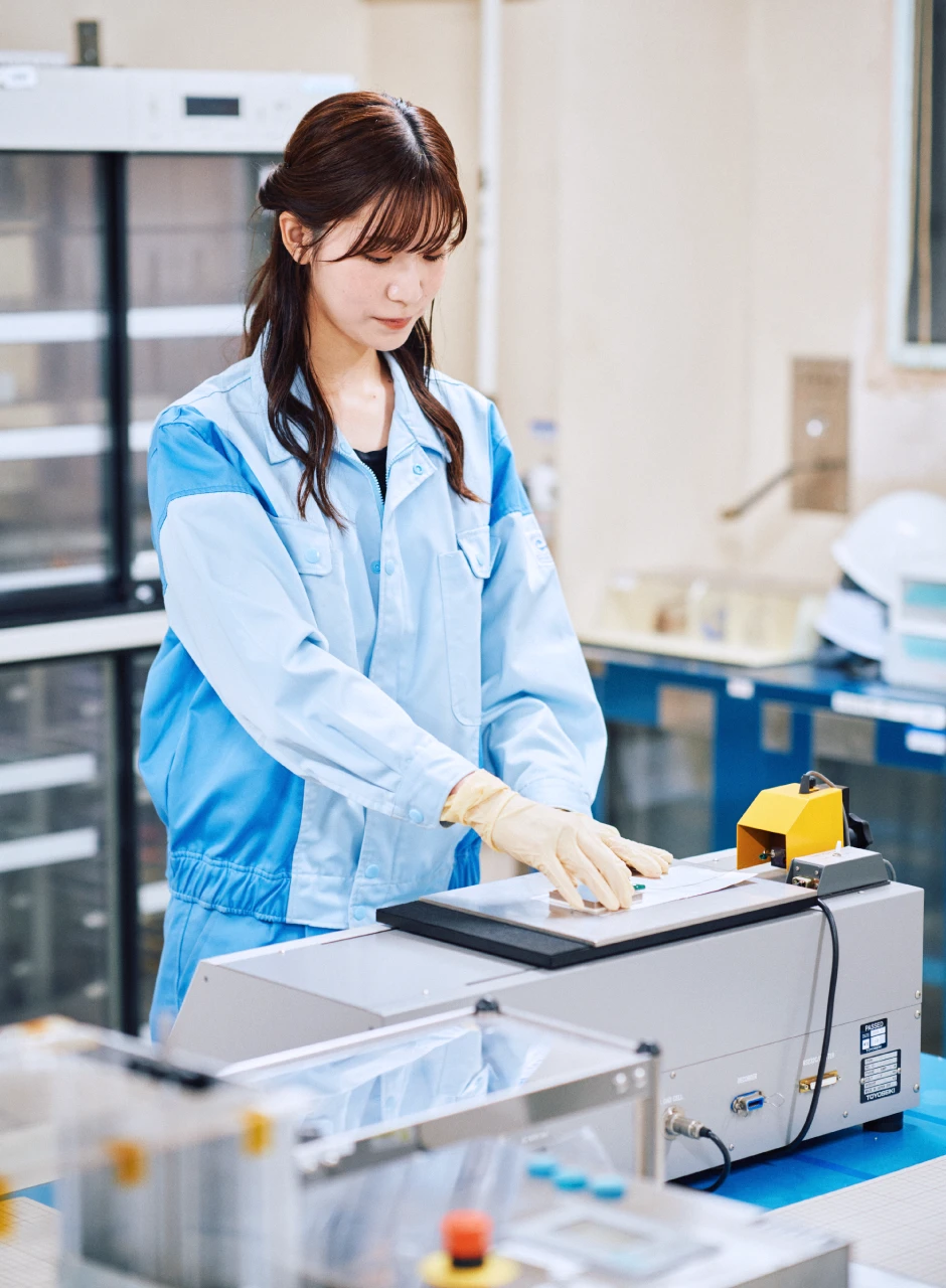| 1~3年目 | 高機能マテリアル事業部 開発部門 配属。 高機能バッテリーパウチの新規仕様開発および次世代電池向けの製品開発を担当。 (3年目~新規プロジェクトを兼務) |