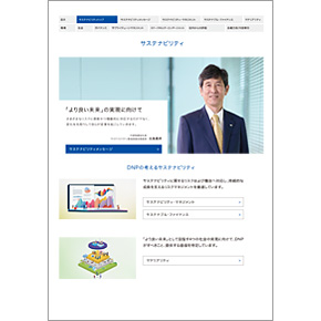 DNPは、サステナビリティ経営の考え方と最新の取り組みをウェブサイト「サステナビリティ」(以下、本サイト)にて網羅的に掲載しています。さらに、本サイトの情報をPDFにまとめた「サステナビリティウェブアーカイブ」と、特に環境に関しては「DNPグループ環境報告書」としてまとめ、年1回公開しています。